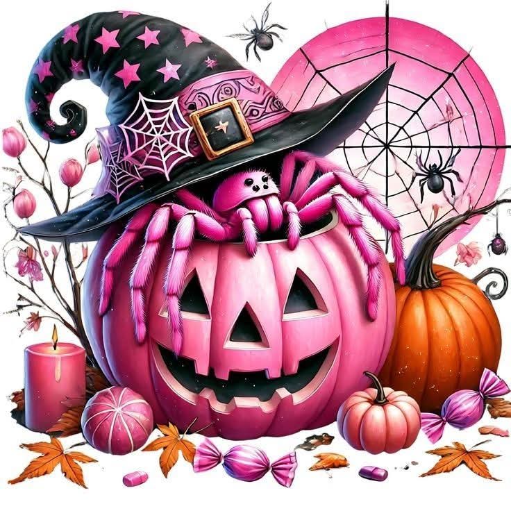 Pumpkin with pink spider